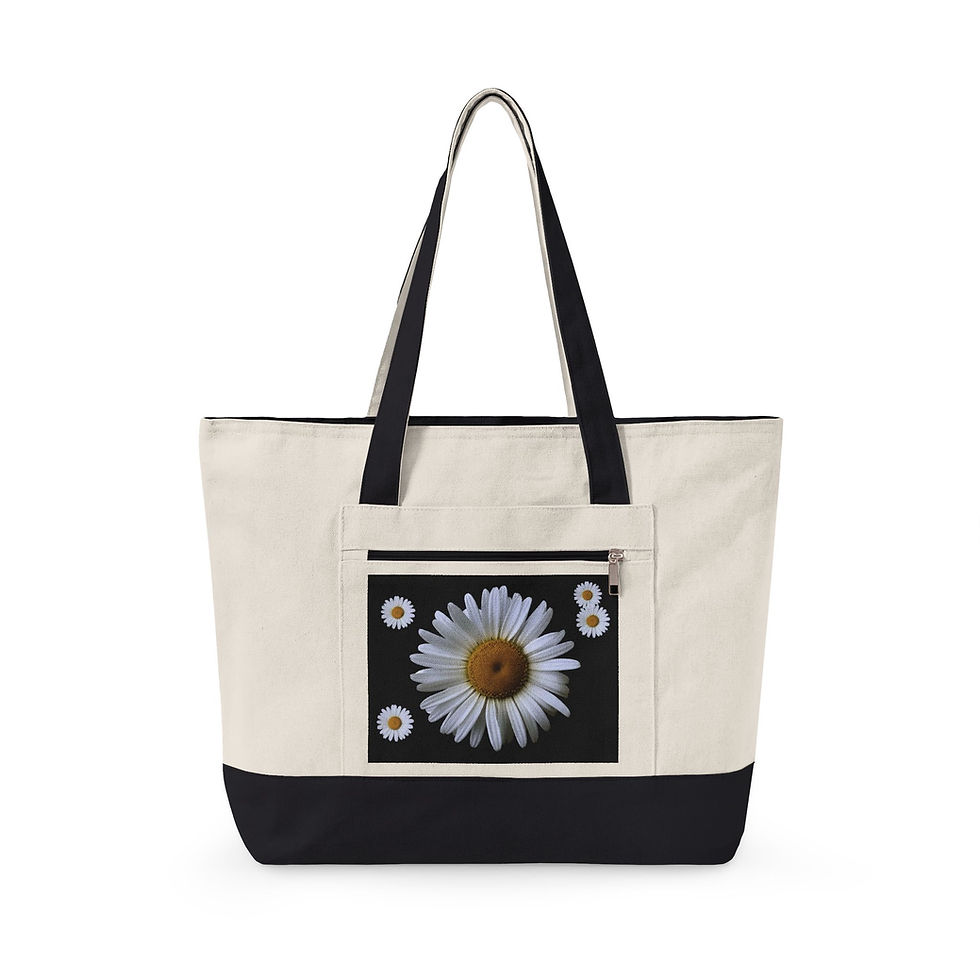 Canvas Tote Bag with Daisy Photo Print — Zippered Everyday Market Tote