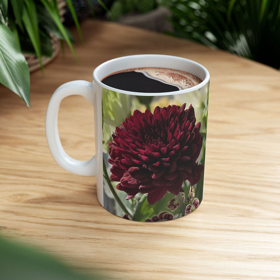 Floral Reflection Mug – Dark Burgundy Dahlia Ceramic Coffee Cup (11oz/15oz)
