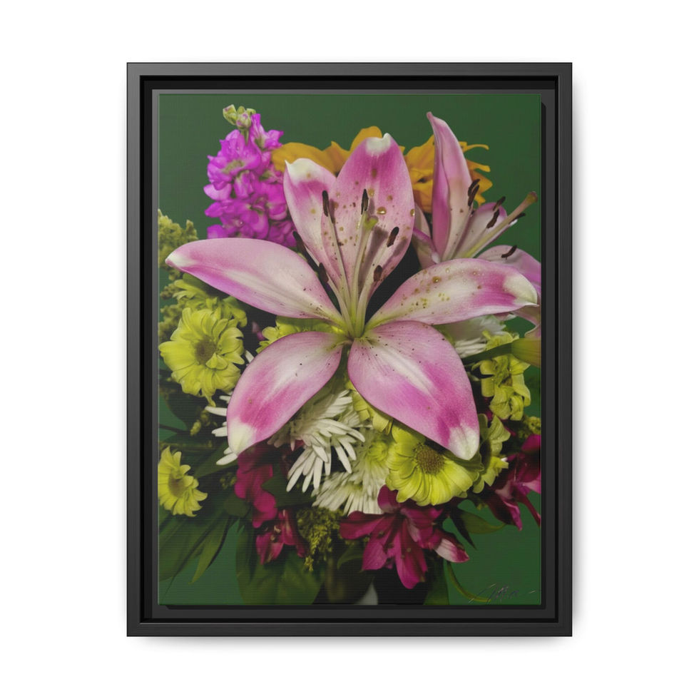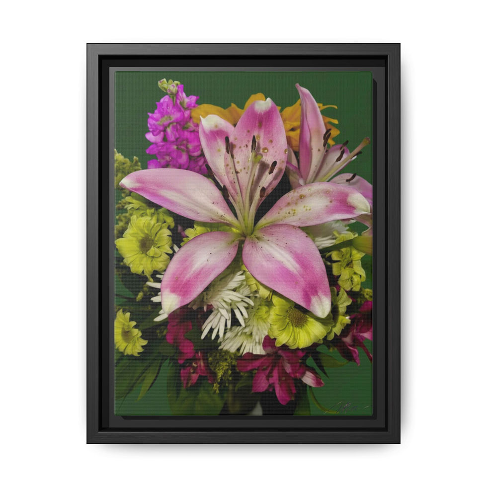 Framed Floral Canvas Print — Pink Lily Bouquet
