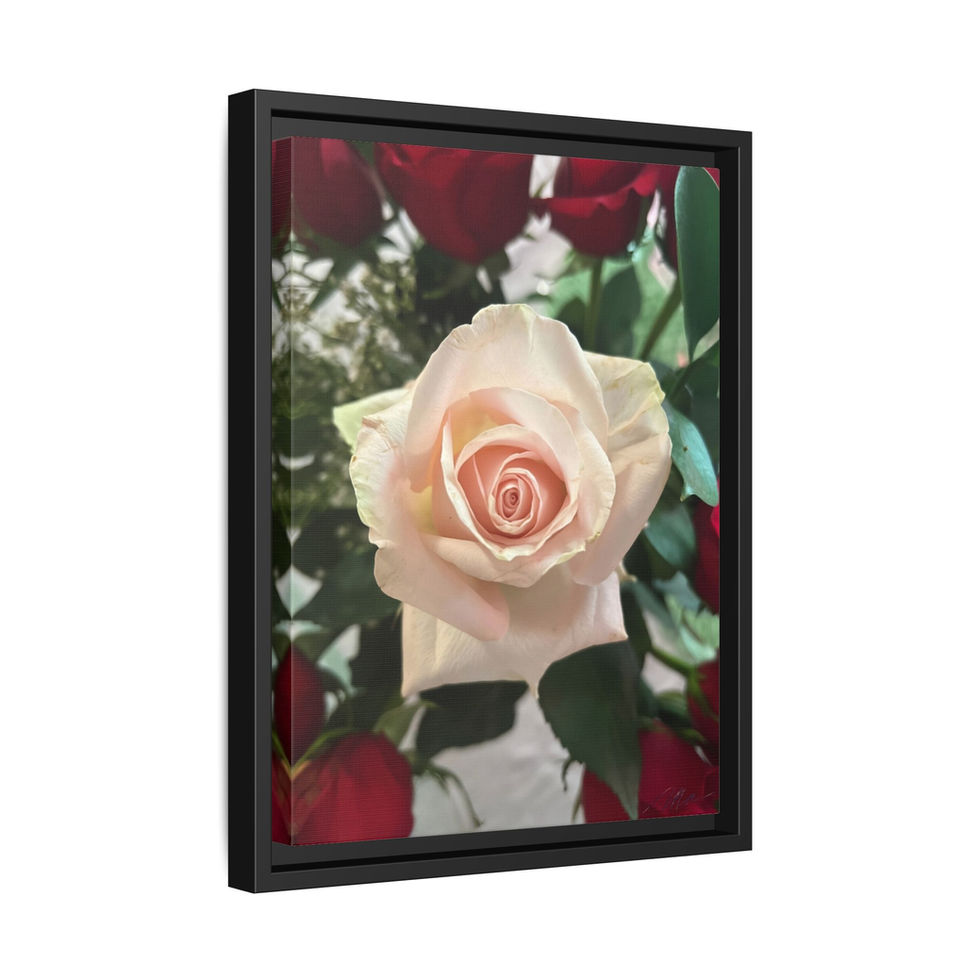 Framed Matte Canvas Print — Soft Pink Rose Floral Wall Art