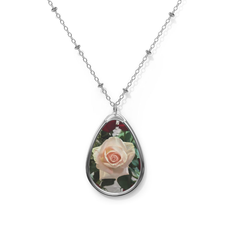 Oval Photo Pendant Necklace — Rose Bloom Personalized Teardrop Locket