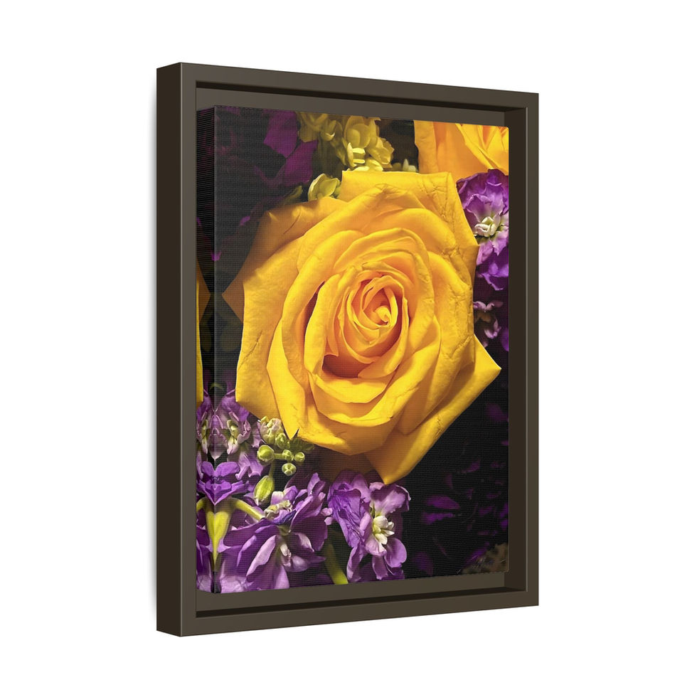 Yellow Rose & Purple Flowers Matte Framed Canvas Print